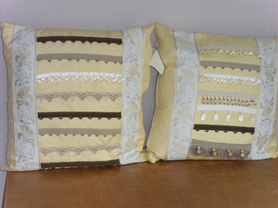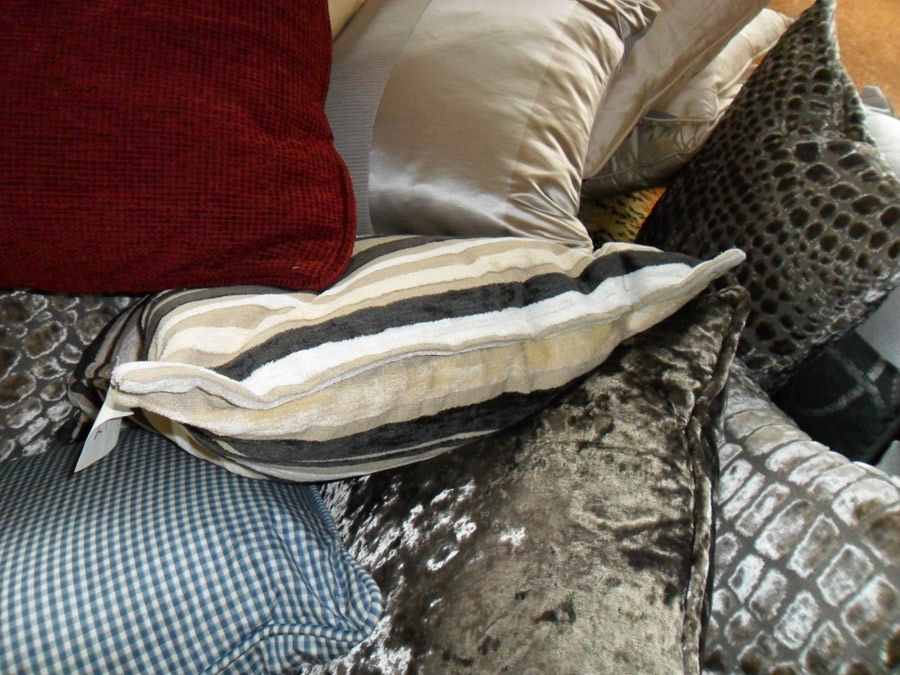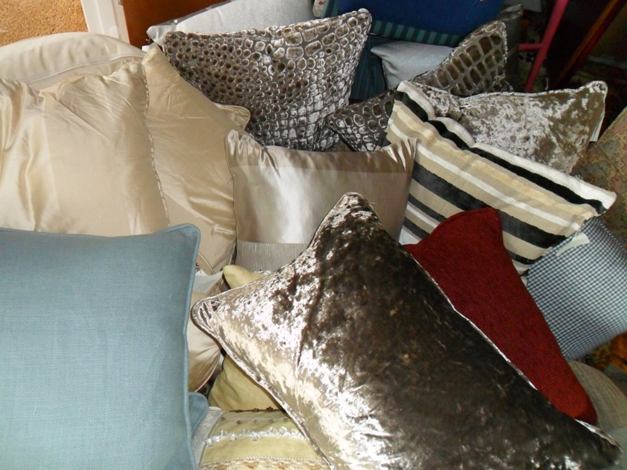 Scatter cushions for sale in sizes from 12"sq to 22"sq some piped, all zipped, various patterns.